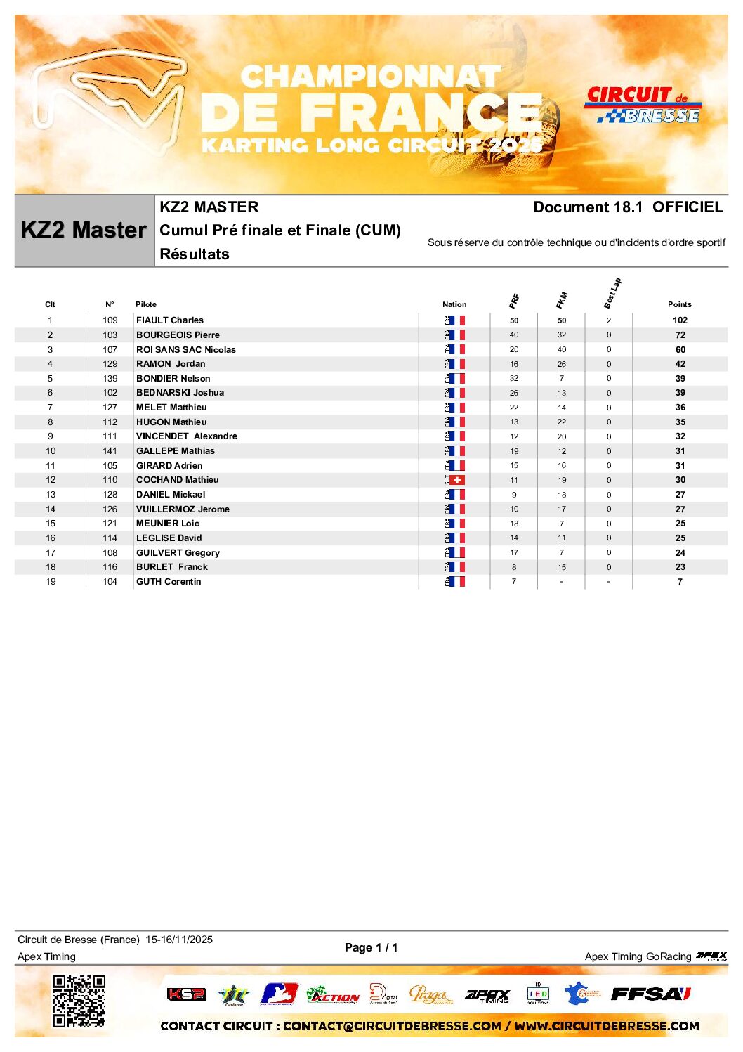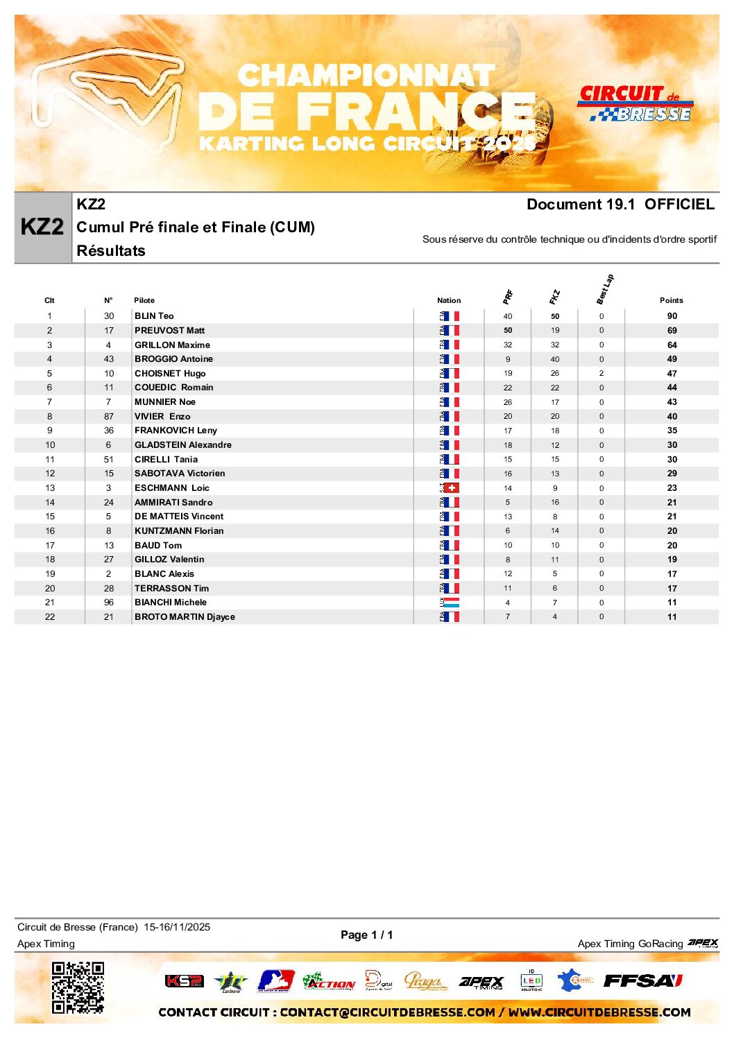 Téo Blin et Charles Fiaults vainqueurs du Championnat de France Long Circuit en KZ2 et KZ2 Master.